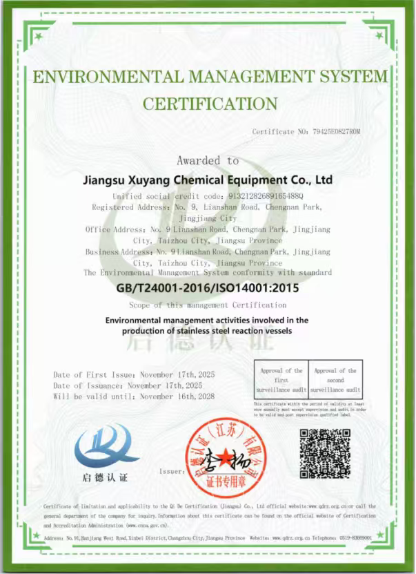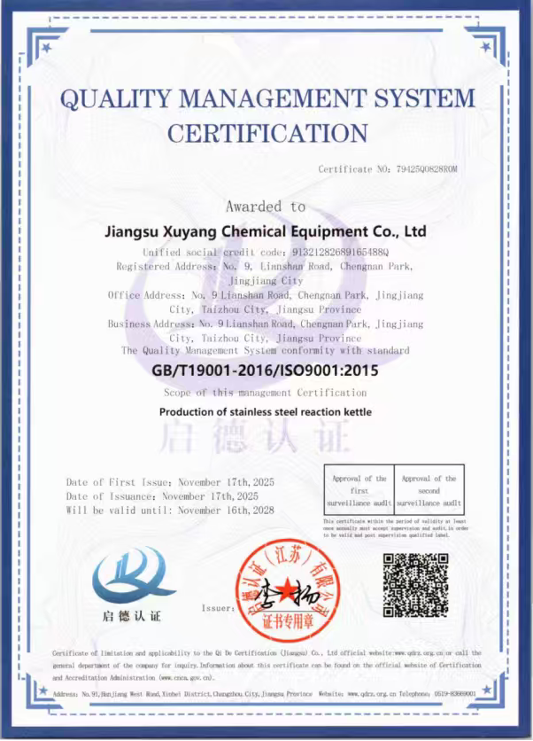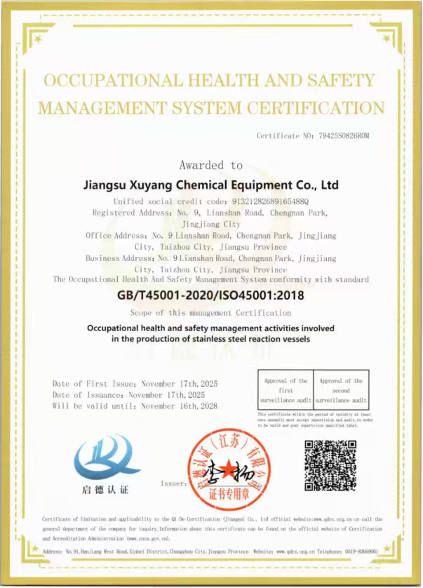 Since 2009, Jiangsu Xuyang Chemical Equipment has specialized in designing and manufacturing high-performance chemical processing systems for petrochemical, pharmaceutical, lithium/new materials, and specialty chemical industries.